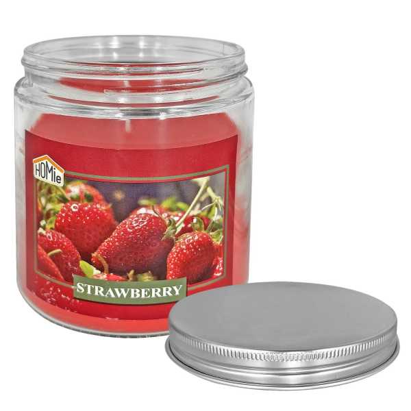 Κερί Φράουλα σε Βάζο Γυάλινο με Καπάκι 10×9,5