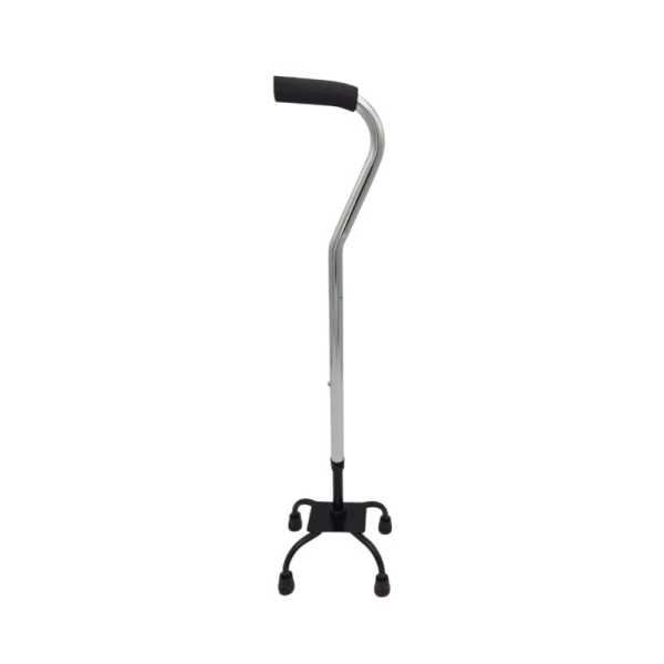 Μπαστούνι βάδισης τετράποδο, αλουμινίου. Στιβαρή κατασκευή με εργονομική λαβή και σταθερή στήριξη με αντιολισθητικά πατάκια. Λαβή κατάλληλη για δεξί και
