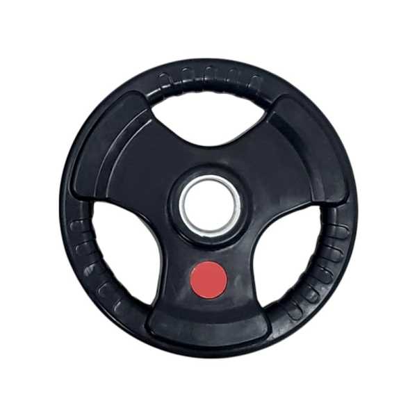 Δίσκος-πιάτο βάρους γυμναστικής με ελαστική αντιολισθητική επένδυση και εργονομικές λαβές, ιδανικό για χρήση πάνω σε μπάρα άρσης ή ως ελεύθερο