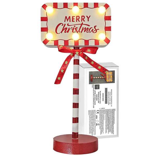 Πινακίδα Ξύλινη Merry Christmas με 6 LED 23x11x7cm