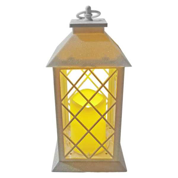 Φανάρι Λευκό με Κερί Μπαταρίας 31x14x14cm Xmasfest