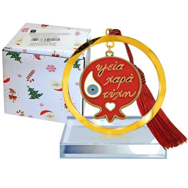 Ρόδι Κρεμαστό Ξύλινο με Plexiglass 15x15cm Xmasfes