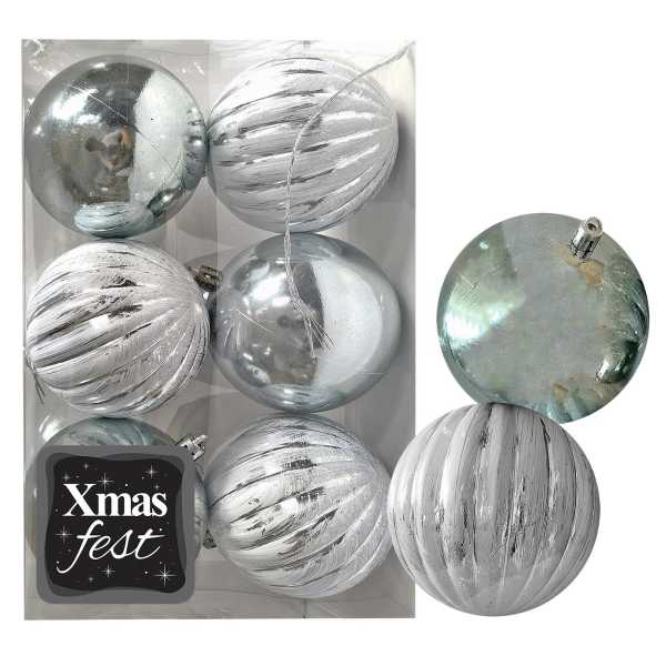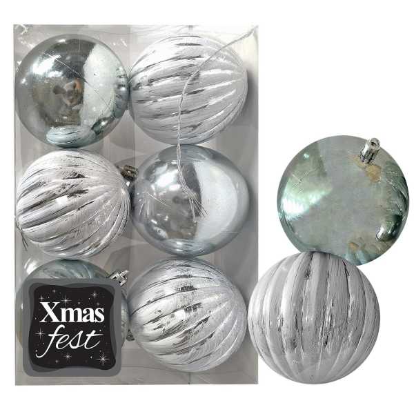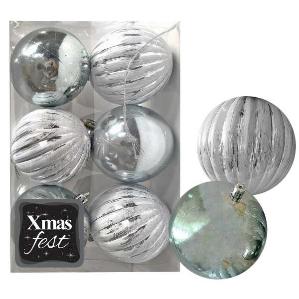 Μπάλες Σμιλεμένες Ασημί πακ=6τεμ φ8 ø8cm Xmasfest
