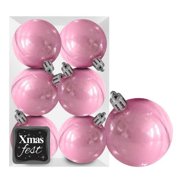 Μπάλες Ντεκόρ ροζ πακ=6τεμ φ8cm ø8cm Xmasfest 1132