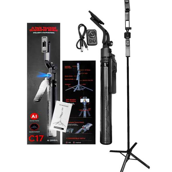 Ράβδος smart selfie με τηλεχειρισμό bluetooth • Με AI 360° face tracking (σε ακολουθεί) 165cm