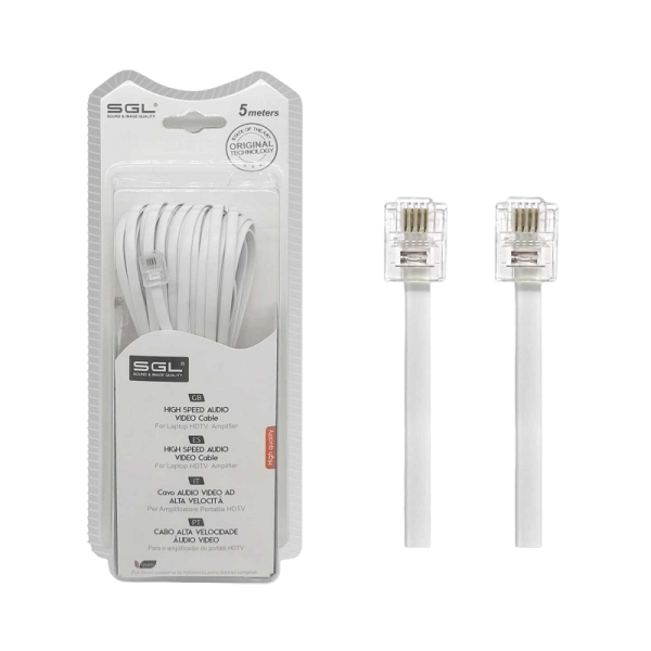Καλώδιο γραμμής τηλεφώνου πλακέ – 6P4C. Μήκος: 5m. Χρώμα: Λευκό.