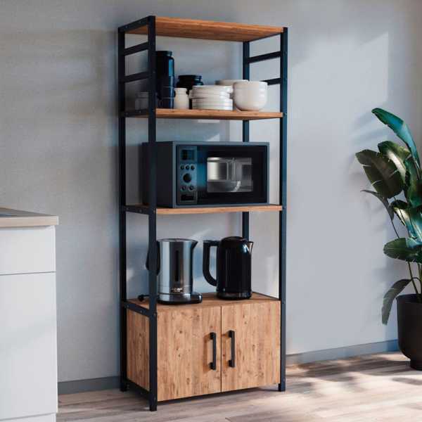 Έπιπλο κουζίνας Printo Megapap μεταλλικό – μελαμίνης χρώμα μαύρο – καπνιστή καρυδιά 81,6×37,5×169,1εκ. Μπορεί να χρησιμοποιηθεί ως βοηθητικό στην κουζίνα