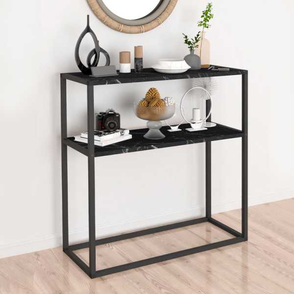 Κονσόλα Castel Megapap μεταλλική – μελαμίνης χρώμα μαύρο εφέ μαρμάρου 90×33,5×90εκ. Η μεταλλική κονσόλα Castel προσθέτει κομψότητα στο σπίτι σας χάρη στην