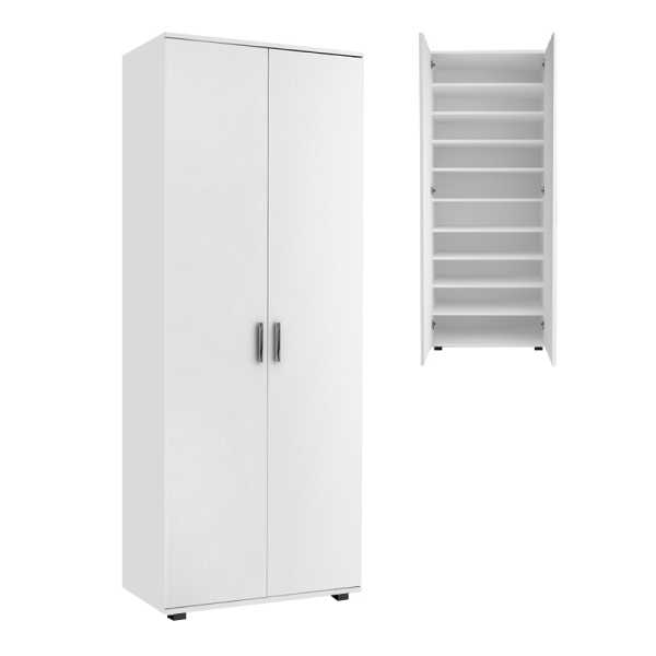 Ντουλάπα ρούχων – παπουτσοθήκη Eric Megapap δίφυλλη χρώμα λευκό 76x36x187εκ. Τεχνικά χαρακτηριστικά: Χρώμα: λευκό Διαστάσεις: Μήκος 76 x Βάθος 36 x