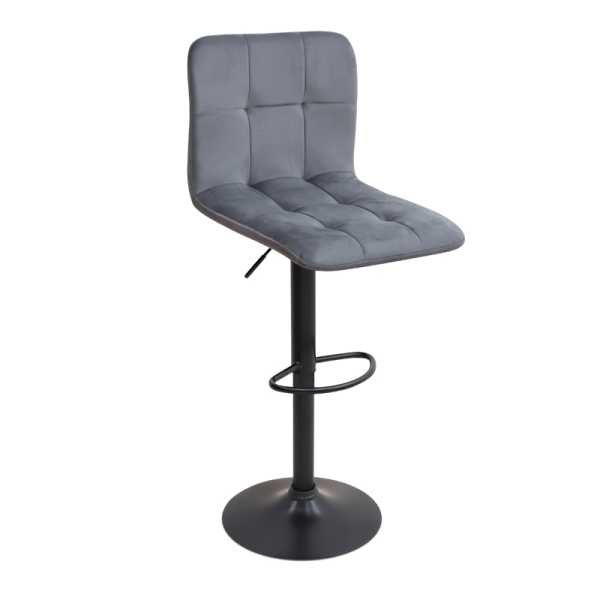 Σκαμπό μπαρ Carmelo Megapap με ρυθμιζόμενο ύψος από βελούδο χρώμα γκρι – βάση μαύρο ματ 45x42x90/113εκ. Δώστε στιλ και λειτουργικότητα στον χώρο σας με το