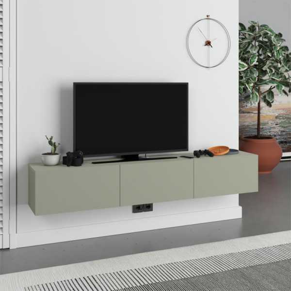 Έπιπλο τηλεόρασης επιτοίχιο Francy Megapap χρώμα ash green 135×31,7×25εκ. Ένα επιτοίχιο έπιπλο τηλεόρασης που συνδυάζει αρχιτεκτονική κομψότητα με λειτουργικότητα, κρύβοντας καλώδια και