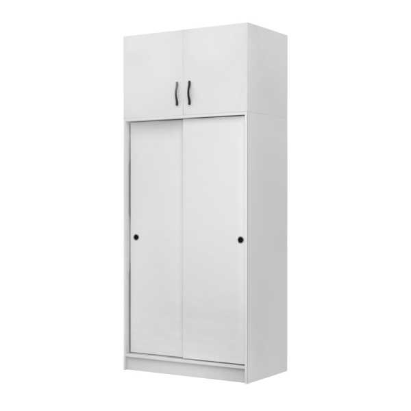 Ντουλάπα ρούχων Regio Megapap δίφυλλη συρόμενη με πατάρι χρώμα λευκό 100x60x240εκ. Η Regio είναι μια μοντέρνα ντουλάπα με συρόμενες πόρτες,