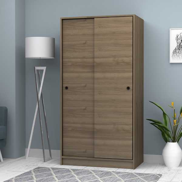 Ντουλάπα ρούχων Misra Megapap δίφυλλη συρόμενη από μελαμίνη χρώμα καρυδί 94x52x182εκ. Τεχνικά χαρακτηριστικά: Χρώμα: καρυδί Διαστάσεις: Μήκος 94 x Βάθος 52 x Ύψος