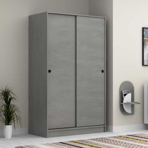 Ντουλάπα ρούχων Regio Megapap δίφυλλη συρόμενη χρώμα γκρι σκυροδέματος 120x60x200εκ. Η Regio είναι μια μοντέρνα ντουλάπα με συρόμενες πόρτες, σχεδιασμένη για να