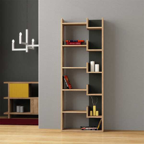 Βιβλιοθήκη μελαμίνης Milton Megapap χρώμα pine oak 44x22x121εκ. Η μοντέρνα βιβλιοθήκη Milton με τον ιδιαίτερο σχεδιασμό της που θυμίζει δέντρο, προσθέτει κομψότητα
