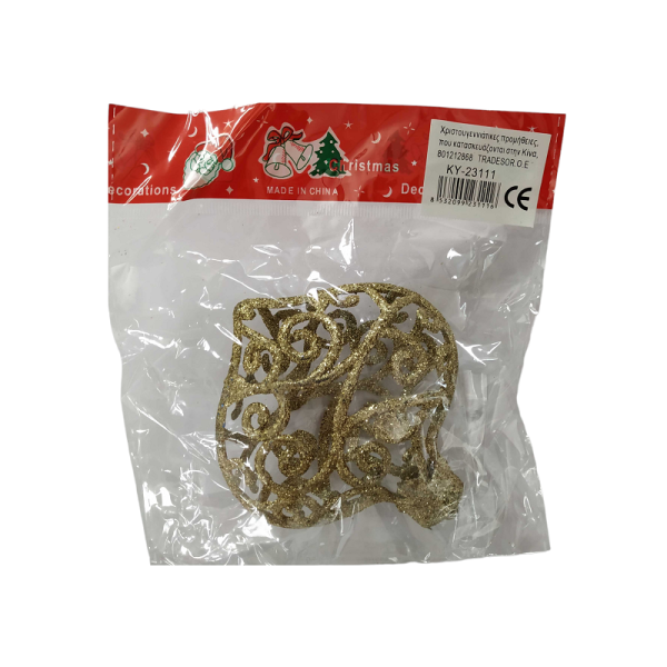 Χριστουγεννιάτικο στολίδι σε πανέμορφο σχεδιασμό, με λαμπερή χρυσόσκονη και ιδιαίτερες λεπτομέρειες.Διάσταση: 12cm. *Διαθέσιμο σε χρυσό και κόκκινο: Σημειώστε το χρώμα