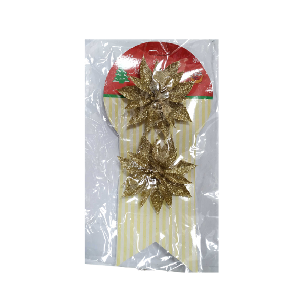 Χριστουγεννιάτικο στολίδι Λουλούδι σε πανέμορφο σχεδιασμό, με λαμπερή χρυσόσκονη και ιδιαίτερες λεπτομέρειες.Διαθέτει μεταλλικό κλιπ-μανταλάκι τοποθέτησης στο πίσω μέρος. 1 τεμάχιο.Διάσταση: