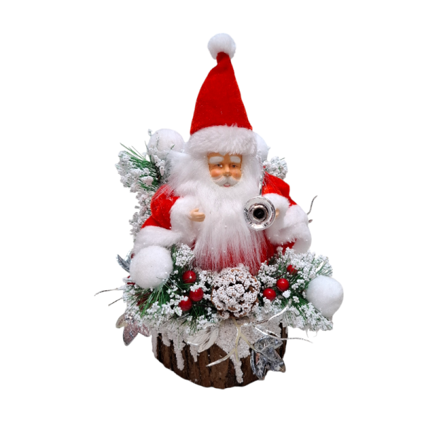 Χριστουγεννιάτικο διακοσμητικό με επιτραπέζια βάση και εντυπωσιακή σύνθεση με φιγούρα Άγιου Βασίλη, ποικιλία στολιδιών και υπέροχες λεπτομέρειες. Διαστάσεις: 35*20cm.