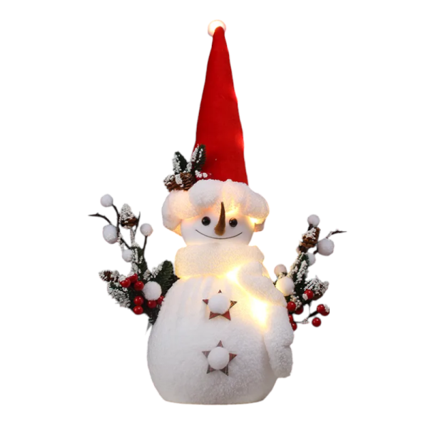 Χριστουγεννιάτικο επιτραπέζιο διακοσμητικό Χιονάνθρωπος με ατμοσφαιρικό φωτισμό LED και υπέροχες σχεδιαστικές λεπτομέρειες. Μπορεί να τοποθετηθεί κάτω από το δέντρο σας