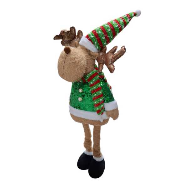 Χριστουγεννιάτικη, λούτρινη, διακοσμητική φιγούρα, με επεκτεινόμενα πόδια ρυθμιζόμενου ύψους, σε υπέροχο σχεδιασμό και εντυπωσιακές, ρεαλιστικές λεπτομέρειες. Μπορεί να ταιριάξει παντού