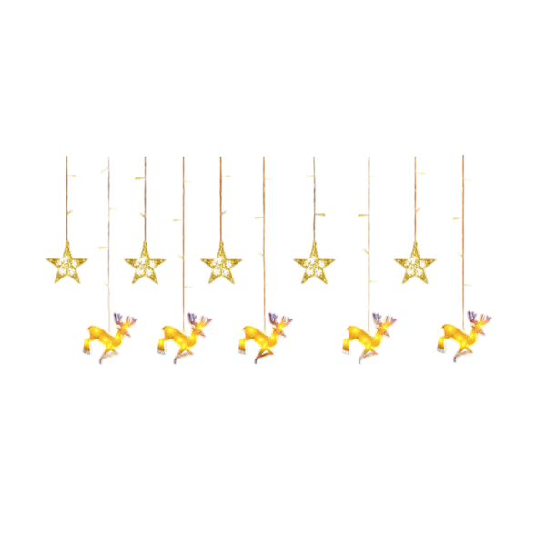 Χριστουγεννιάτικα διακοσμητικά φώτα LED τύπου κουρτίνα με σχέδιο τάρανδοι και αστέρια.Χρώμα φωτισμού: θερμό λευκόΤροφοδοσία ρεύματος.Πλάτος κουρτίνας 3m + 1,20m καλώδιο