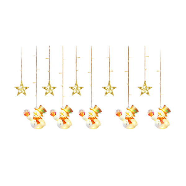 Χριστουγεννιάτικα διακοσμητικά φώτα LED τύπου κουρτίνα με σχέδιο χιονάνθρωποι και αστέρια.Χρώμα φωτισμού: θερμό λευκόΤροφοδοσία ρεύματος.Πλάτος κουρτίνας 3m + 1,20m καλώδιο