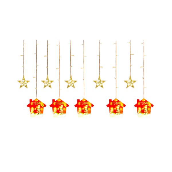 Χριστουγεννιάτικα διακοσμητικά φώτα LED τύπου κουρτίνα με σχέδιο σπιτάκια και αστέρια.Χρώμα φωτισμού: θερμό λευκόΤροφοδοσία ρεύματος.Πλάτος κουρτίνας 3m + 1,20m καλώδιο