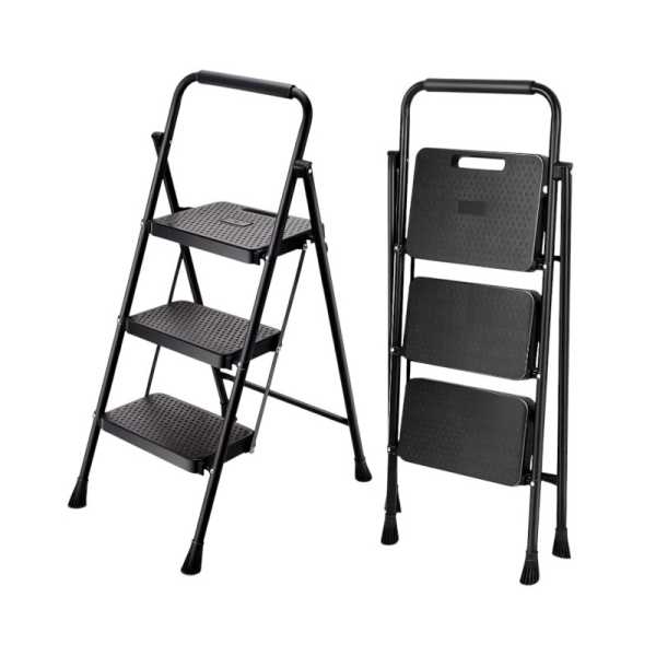 Πτυσσόμενη σκάλα 3 σκαλιών, με στιβαρή σιδερένια κατασκευή, και εύκολη αποθήκευση. Διαστάσεις (Υ-Π): 121*45 cm