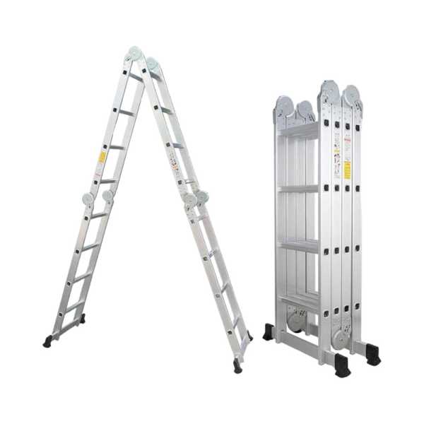 Πτυσσόμενη πολυμορφική σκάλα με στιβαρή κατασκευή αλουμινίου, και εύκολη αποθήκευση. Συνολικό μήκος: 3.7m.