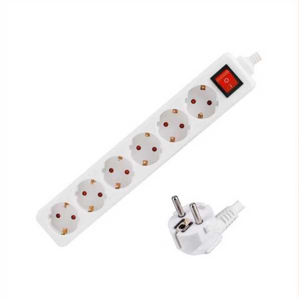 Πολύπριζο σούκο 6 θέσεων με διακόπτη και καλώδιο μήκους 3m, λευκό.