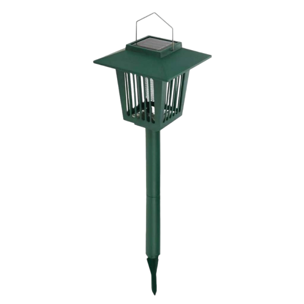 Ηλιακό φωτιστικό κήπου LED με εντομοκτόνο και πάσσαλο τοποθέτησης στο έδαφος. Τροφοδοτείται αποκλειστικά από το ηλιακό πάνελ και εγκαθιστάται ασύρματα