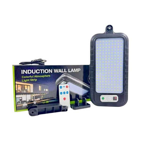 Ηλιακός προβολέας LED λευκού φωτισμού με αισθητήρα κίνησης που τον ενεργοποιεί αυτόματα και με ενσωματωμένη ταινία/γιρλάντα με πολύχρωμο διακοσμητικό φωτισμό