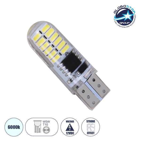 Τεχνικά Χαρακτηριστικά του Λαμπτήρας LED T10 6 SMD 4014 Can Bus Ψυχρό Λευκό GloboStar 81107: Ισχύς: 2.5 Watt Τάση: 12V