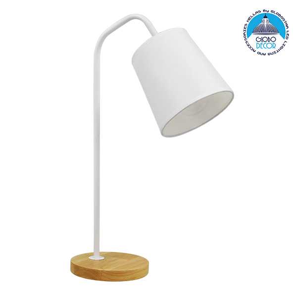 GloboStar® BARNABY 01574 Μοντέρνο Επιτραπέζιο Φωτιστικό Πορτατίφ Μονόφωτο Λευκό Μεταλλικό με Καπέλο και Ξύλινη Καφέ Βάση Φ13 x Υ48cm