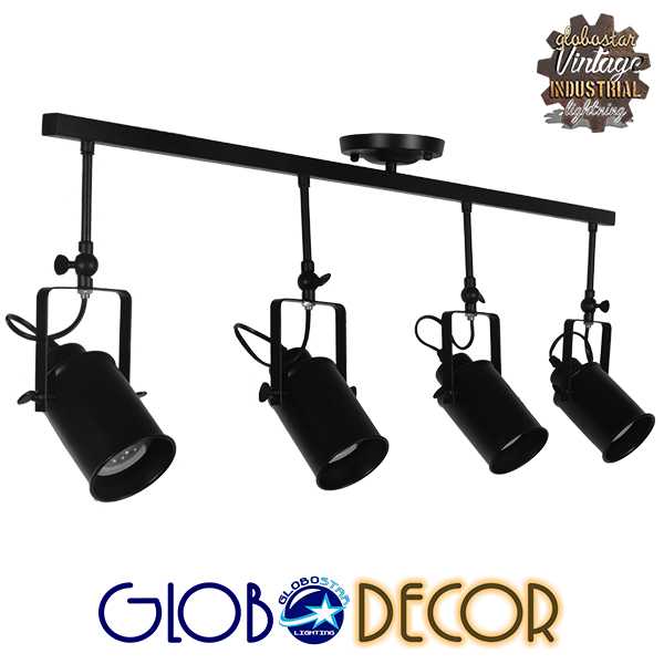 GloboStar® HOLLYWOOD 01156 Vintage Φωτιστικό Οροφής Πολύφωτο Μαύρο Μεταλλικό Ράγα Μ13 x Π110 x Υ38cm Χρώμα Βάσης: Μαύρο Χρώμα