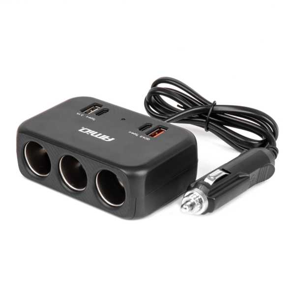 ΑΝΤΑΠΤΟΡΑΣ ΑΝΑΠΤΗΡΑ 12/24V 120W ΜΑΥΡΟΣ/3 ΘΕΣΕΙΣ/2xUSB-A+1xUSB-C ΤΑΧΕΙΑΣ ΦΟΡΤΙΣΗΣ/ΚΑΛΩΔΙΟ 70cm AMIO – 1 Τεμ. Βασικά χαρακτηριστικά του προϊόντος: 3 υποδοχές αναπτήρα: