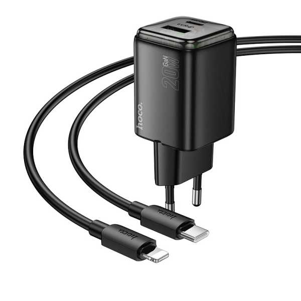 Φορτιστής τοίχου Hoco N52 με λειτουργία γρήγορης φόρτισης και διπλή έξοδο. Επιτρέπει την ταχεία φόρτιση κινητών συσκευών. Περιλαμβάνεται καλώδιο USB-C