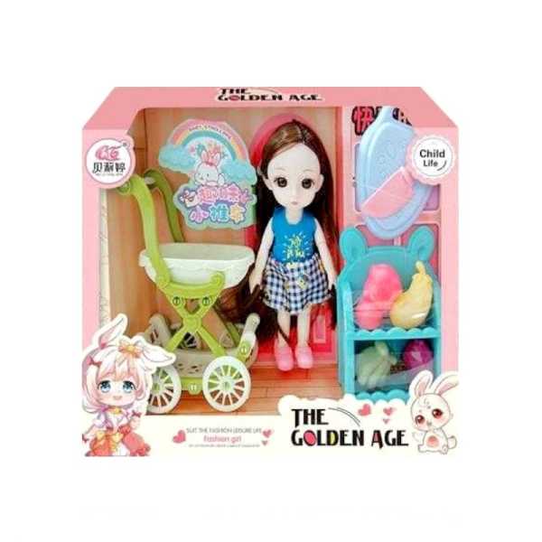 Σετ κούκλα σε vintage στυλ, με σετ αξεσουάρ κουζίνας και καροτσάκι μωρού, σε υπέροχο πολύχρωμο σχεδιασμό! Διαστάσεις συσκευασίας: 24 x