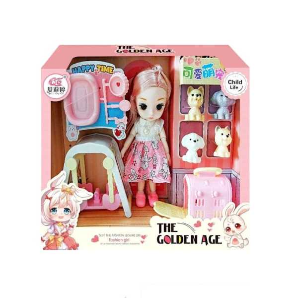 Σετ κούκλα σε vintage στυλ, με κατοικίδια ζωάκια και αξεσουάρ φροντίδας, σε υπέροχο πολύχρωμο σχεδιασμό! Διαστάσεις συσκευασίας: 24 x 21