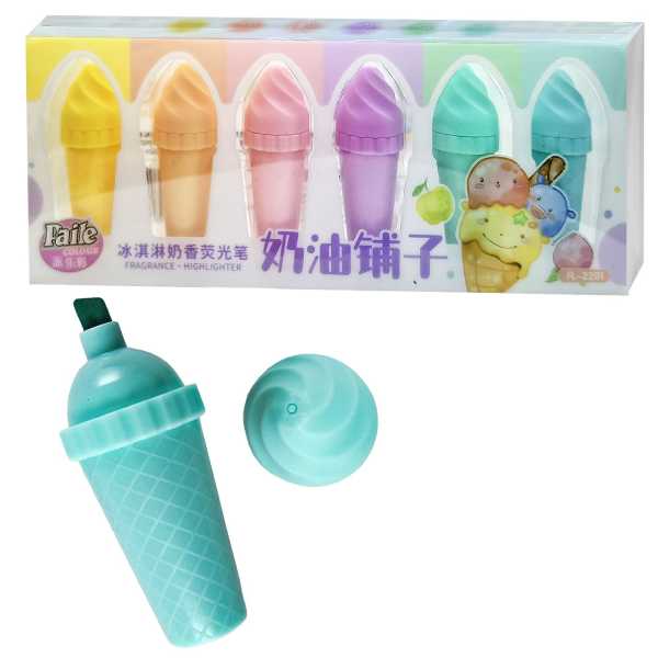 Σετ 6 Μαρκαδόροι Υπογραμμίσεως Παγωτό Χωνάκι 19x8x