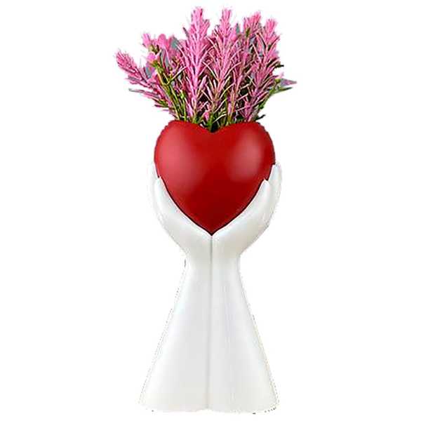 Διακοσμητική Γλάστρα σε Παλάμη με Άνθη Κόκκινη Καρ