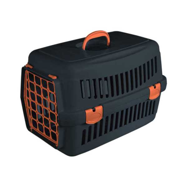 Το Felix Mix Box είναι κουτί μεταφοράς κατοικιδίων σε μαύρο χρώμα με πορτοκαλί κουμπώματα και πλαστική πόρτα για μεγαλύτερη ασφάλεια,