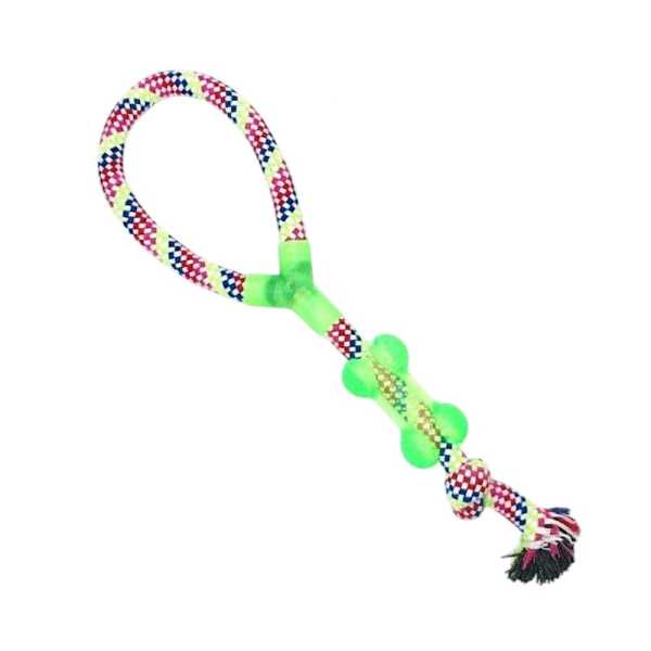 Παιχνίδι σκύλου σχοινί με κόκκαλο μασητικό, από ανθεκτικό, μη τοξικό πολυεστέρα, ιδανικό για παιχνίδια τραβήγματος/αντίστασης ενώ παράλληλα βοηθά στην υγιεινή