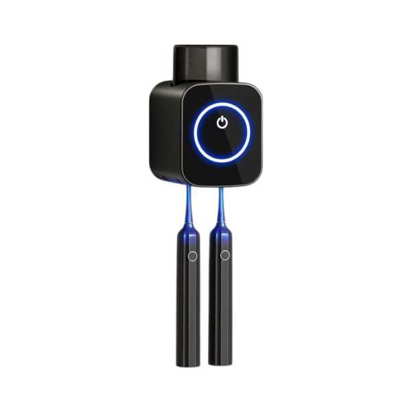 Πρωτοποριακή βάση αποστείρωσης οδοντόβουρτσας 2 θέσεων, επιτοίχια, σε μοντέρνο κομψό σχεδιασμό που μπορεί να ταιριάξει σε κάθε μπάνιο. Αποστειρώνει την οδοντόβουρτσά