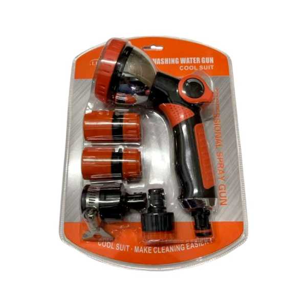 Σετ πιστόλι και ταχυσύνδεσμοι βρύσης για λάστιχο ποτίσματος-κήπου, πλαστικοί, υψηλής ανθεκτικότητας. Σετ 5 τεμαχίων.