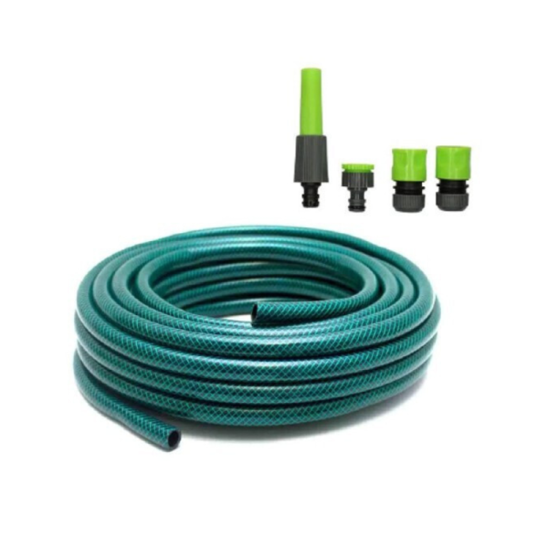 Λάστιχο ποτίσματος, εύκαμπτο και ιδιαίτερα ανθεκτικό, κατάλληλο για επαγγελματική ή οικιακή χρήση. Διαθέτει πλήρες σετ 4 τεμαχίων με εξάρτημα ποτίσματος
