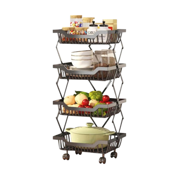 Μεταλλική ραφιέρα τετραώροφη, με ρόδες για εύκολη μετακίνηση. Πτυσσόμενη για να μην καταλαμβάνει χώρο όταν δεν χρησιμοποιείται, με εργονομικό σχεδιασμό