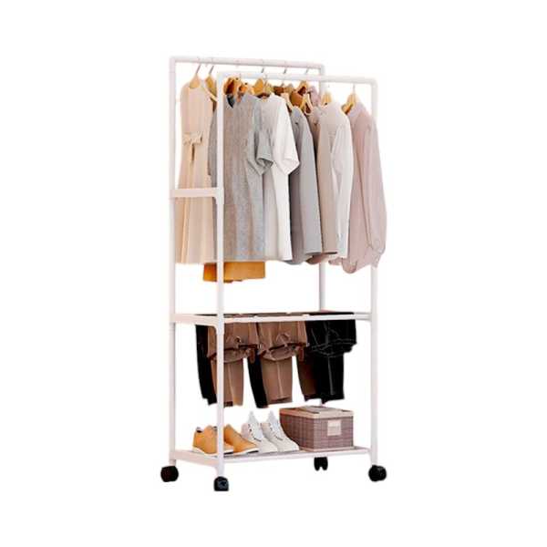 Πτυσσόμενη κρεμάστρα δαπέδου και απλώστρα ρούχων πολλαπλών χρήσεων, τετράποδη, με μεταλλικό σκελετό και εργονομικό σχεδιασμό που αναδιπλώνεται για εξαιρετικά εύκολη