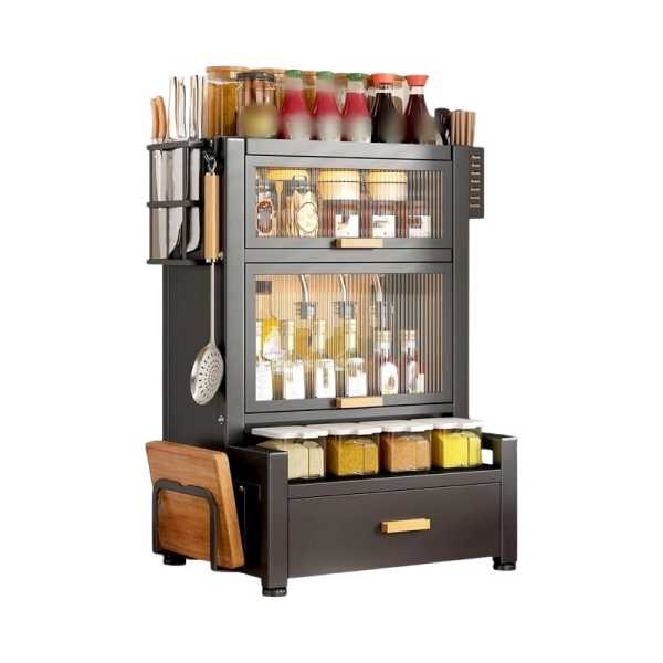 Πλαστικό ντουλαπάκι και ραφιέρα οργάνωσης πάγκου κουζίνας, με στιβαρό μεταλλικό σκελετό,με συρτάρι, ράφι και 2 κλειστά ντουλαπάκια με μαγνητικό πορτάκι.Κατάλληλη