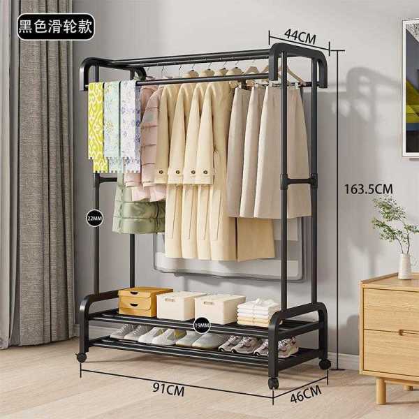 Τροχήλατη κρεμάστρα δαπέδου με ράφια παπουτσιών – YH6806 – 114074 – Black